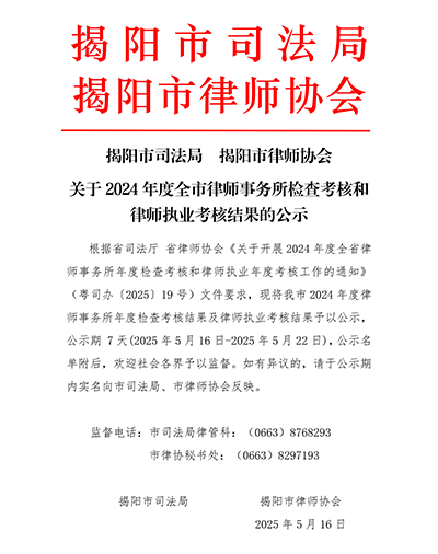 关于“揭阳市优秀女律师”评选活动拟表彰对象的公示