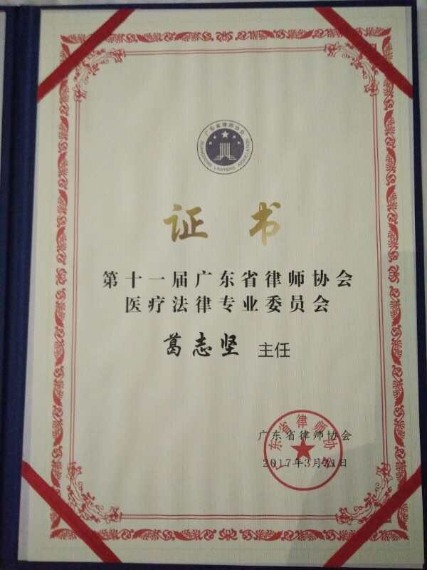 今日,传来佳讯!我市律师协会副会长葛志坚同志当选为广东省律师协会第十一届医疗法律专业委员会主任。