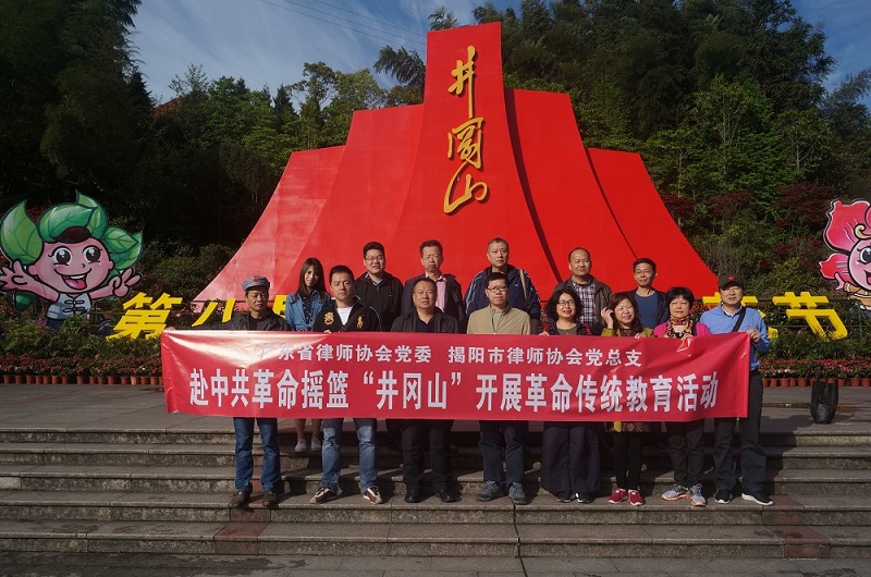 为迎接中国共产党第十九届全国代表大会和广东省委十二次党代会的胜利召开,响应习总书记倡导的“要把红色资源利用好,把红色传统发扬好,把红色基因传承好”的指示精神,省律协党委与揭阳市律协党总支于2017年4月21~23日组织部分律师党员赴井冈山联合开展了革命传统教育活动。