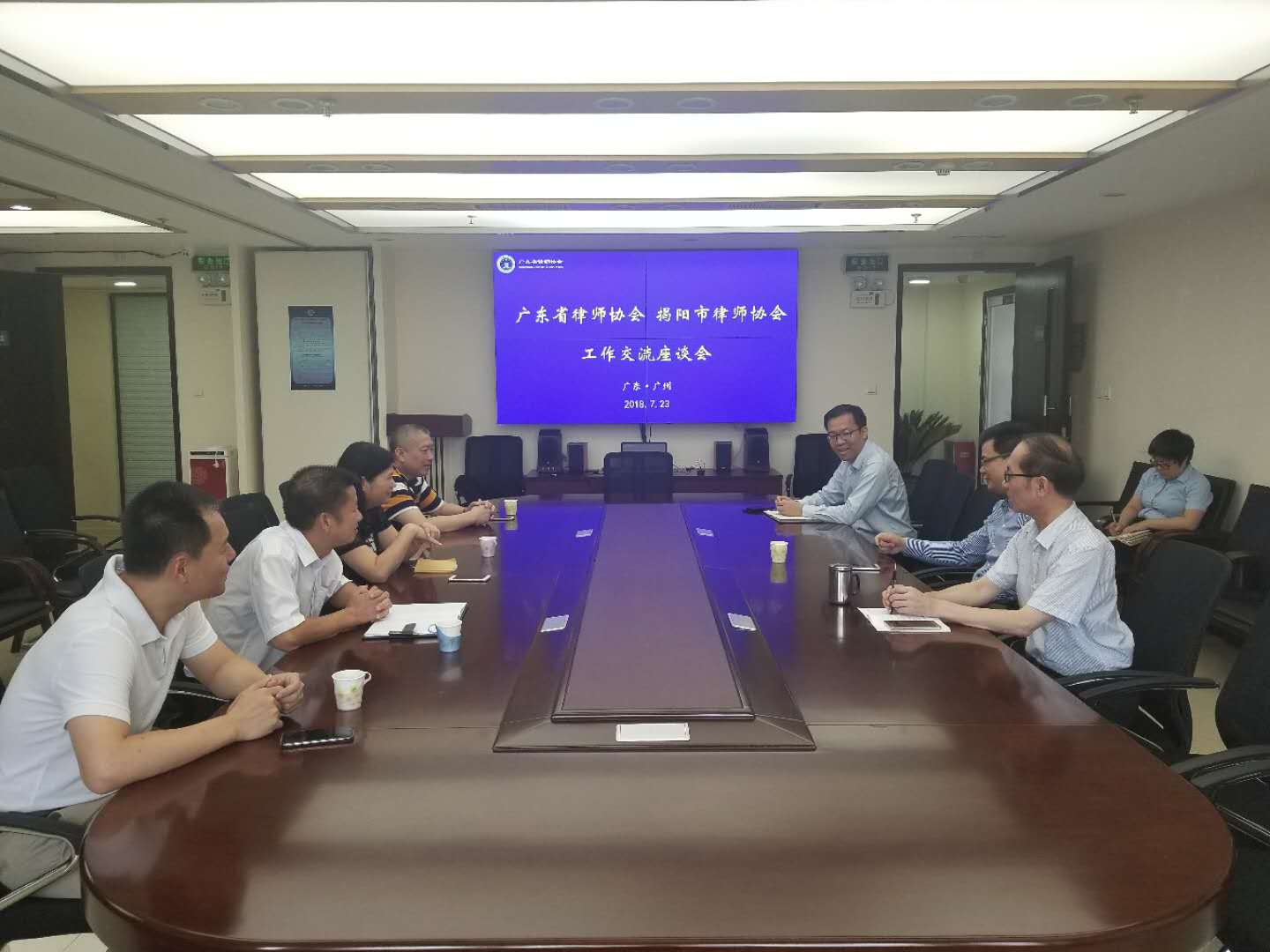 2018年7月23日,市司法局党组成员、副局长高晓娟,市律师协会会长吴奕练、常务副会长葛志坚、秘书长张宇光一行4人前往广州拜访广东省律师协会,受到省律协会长肖胜方、秘书长叶港、副秘书长邓捷等热情接待。